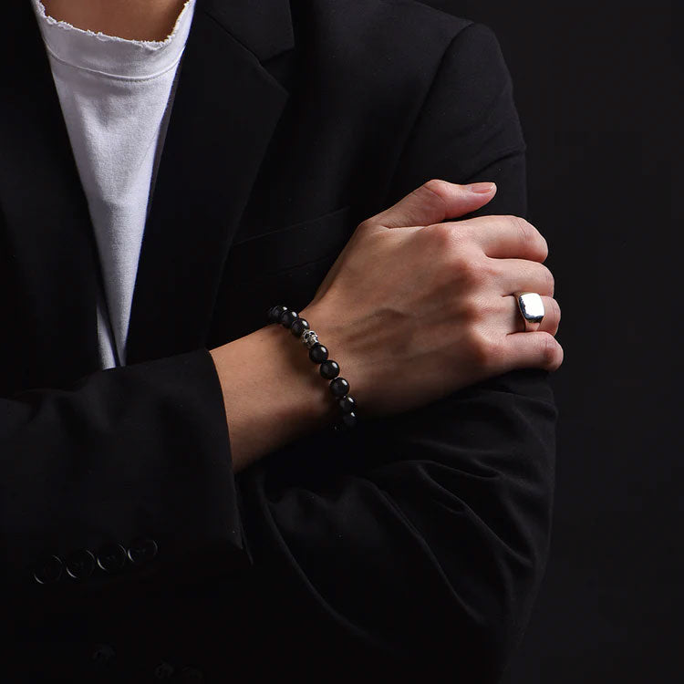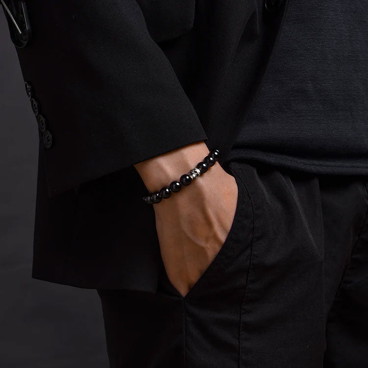 Sterling Silver Obsidian Skull Beaded Bracelets