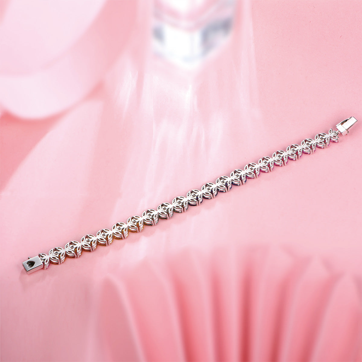Sterling Silver Pear Cut Colored Gem Flower Shape Plain Bracelet