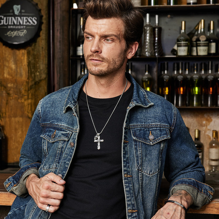 Sterling Silver Skull Flower Cross Necklace Pendants
