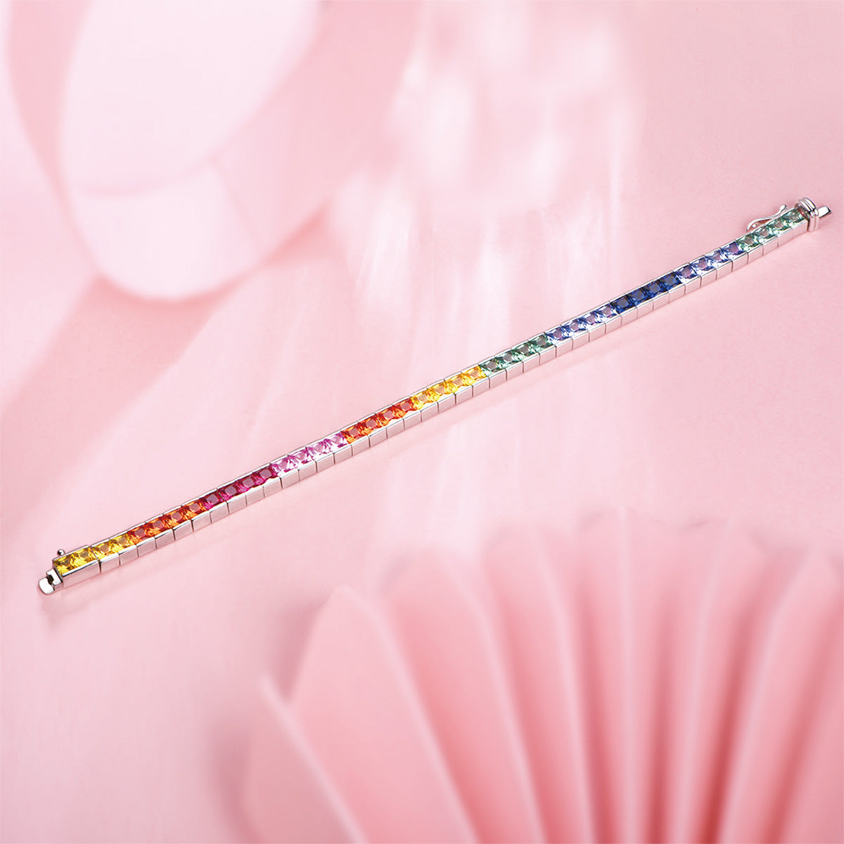 Sterling Silver Square Cut Tension Setting Colored Gem Tennis Bracelet