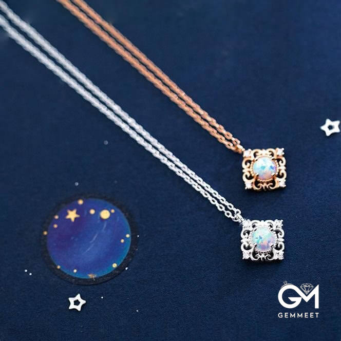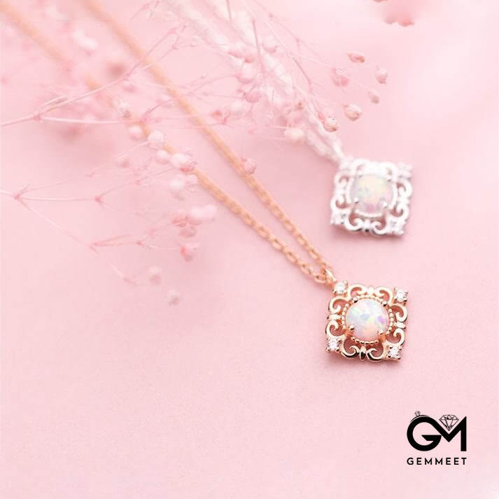 Sterling Silver Vintage Opal Delicate Pattern Necklace
