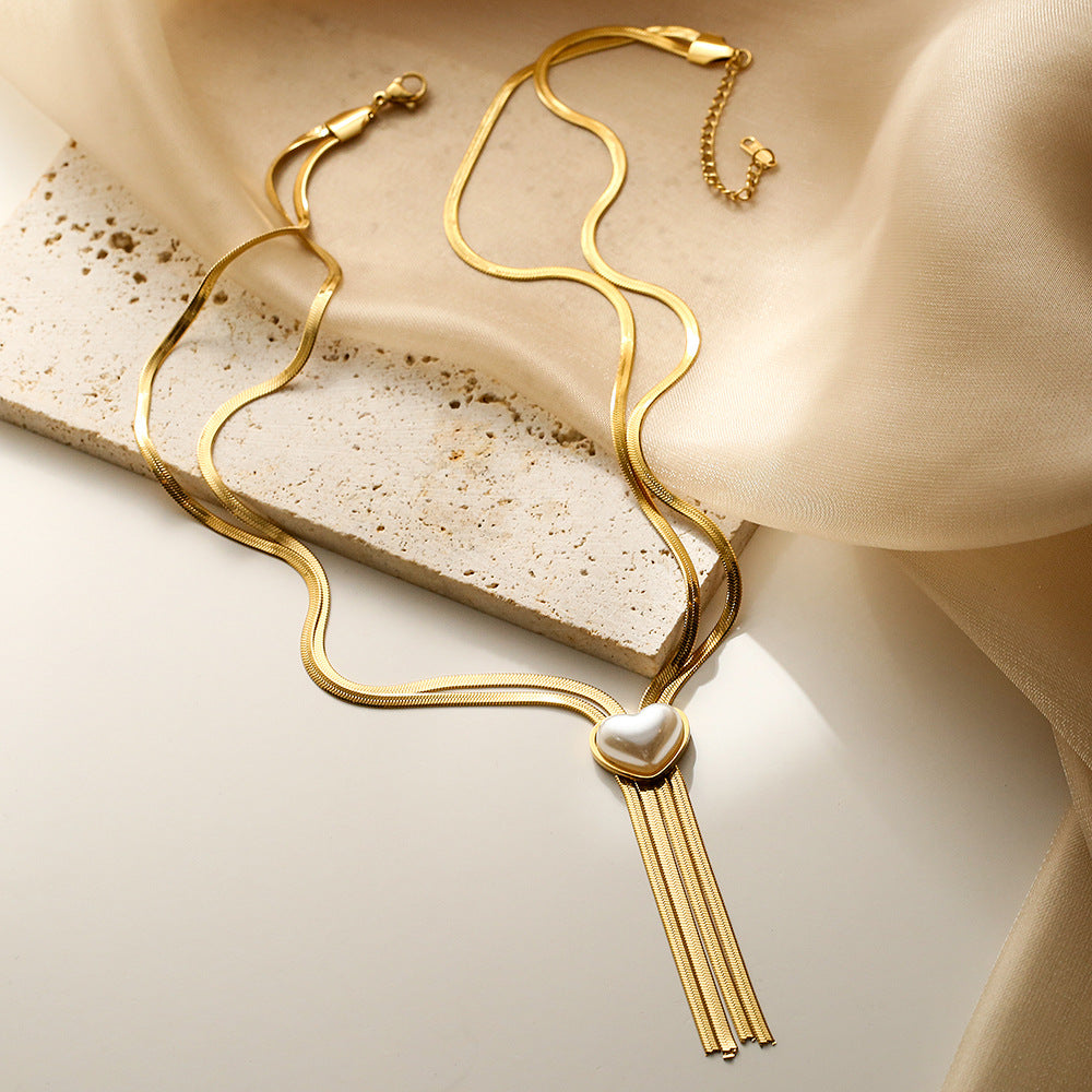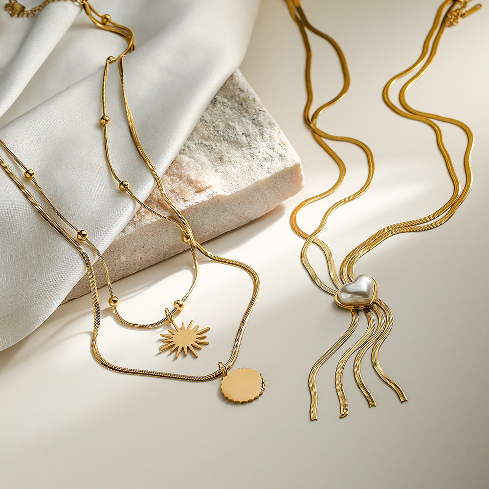 Sun & Heart Tassel Pendant 2 Layers Necklace