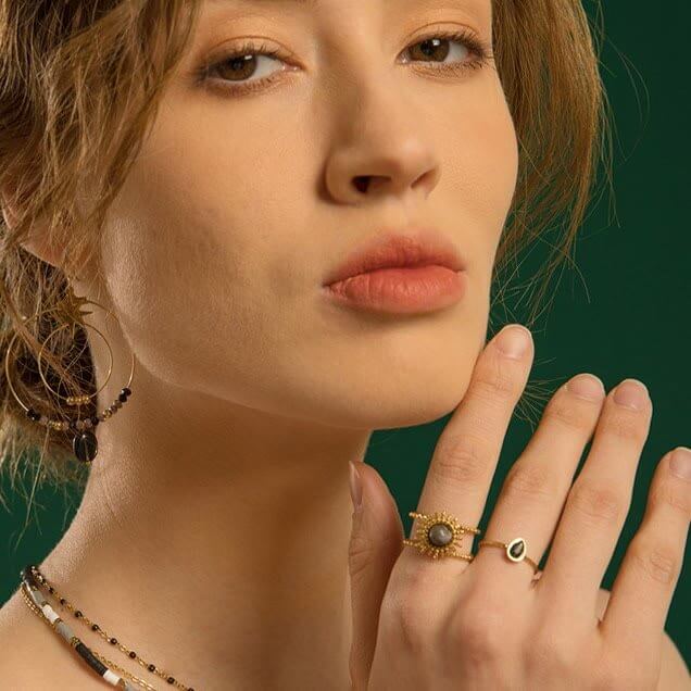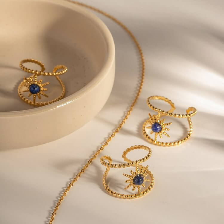 Sunflower Double Row Eight Pointed Star Gem Ring