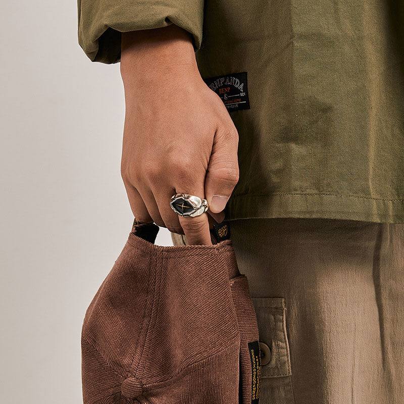 "Tearing Starlight" Retro Men's Gold Cross Ring