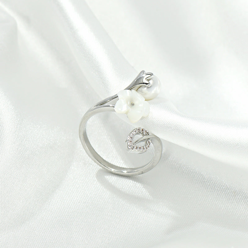 Temperament Sense Flower Leaves Copper Encrusted Zircon Ring