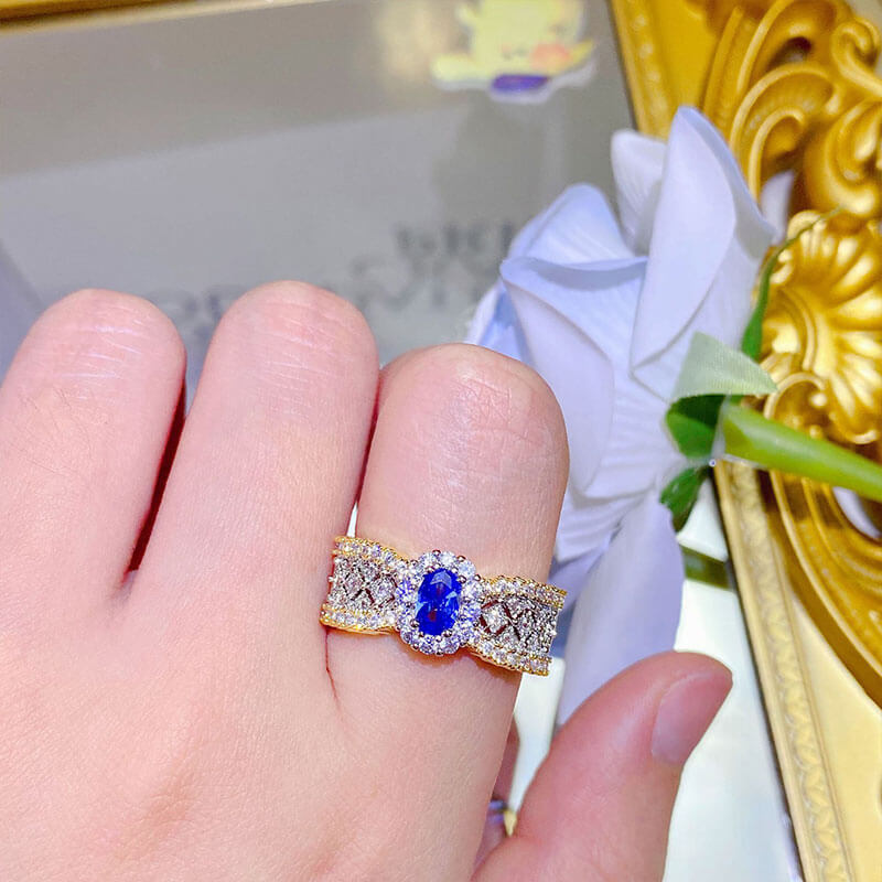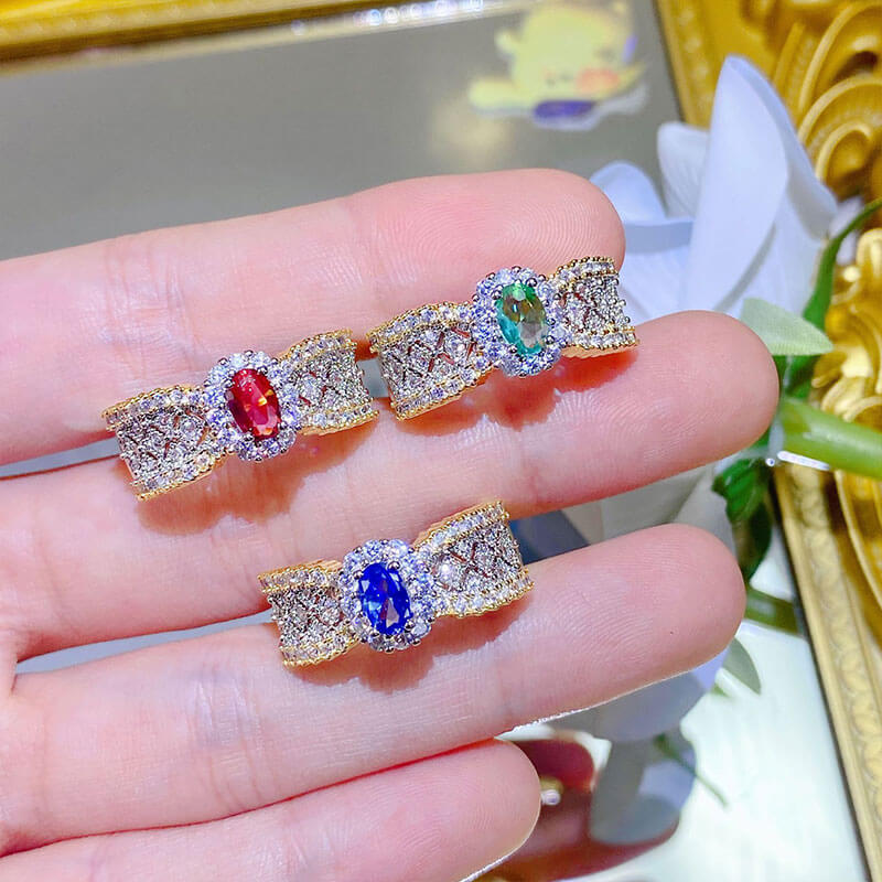 Textured Carved Gold Lace Two-tone Gold Emerald Ring with Diamonds