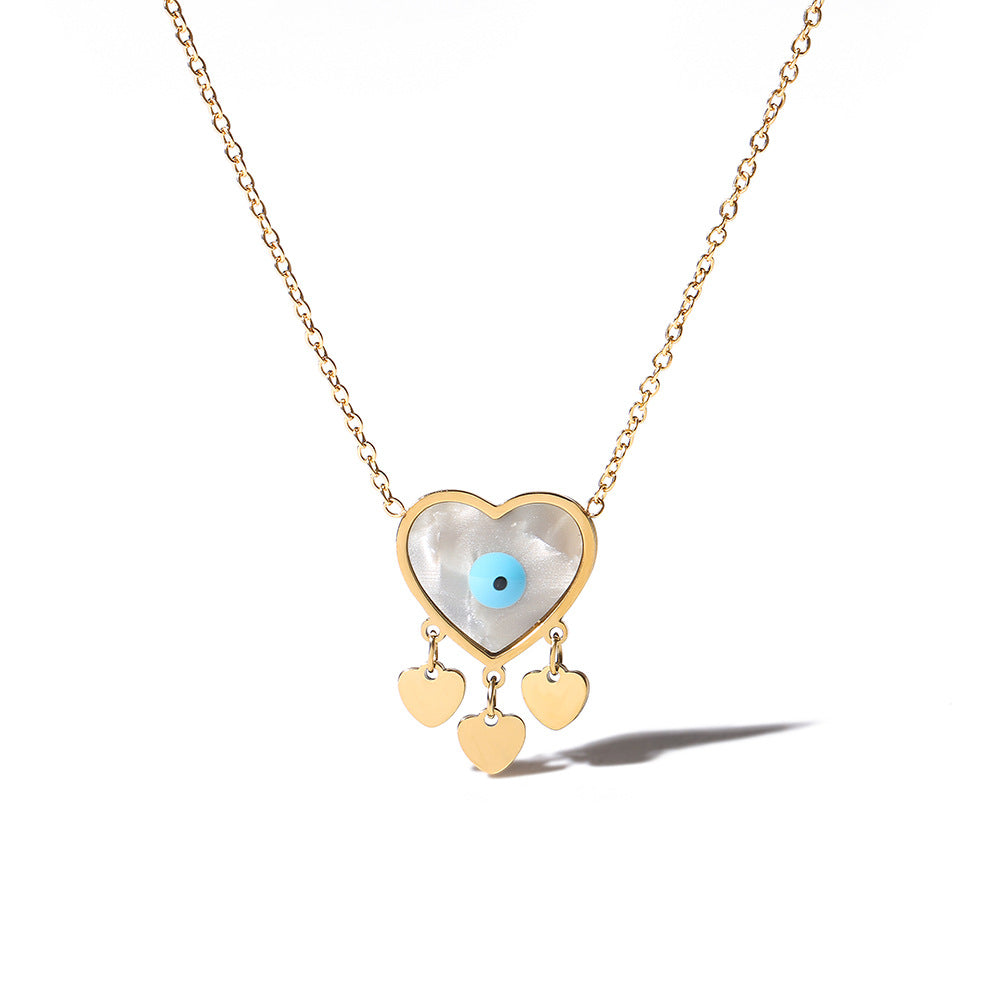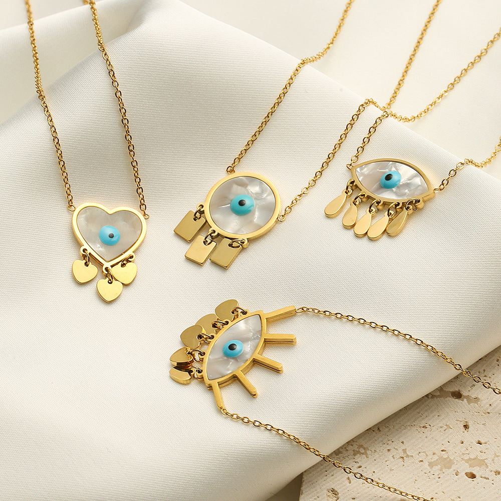 Titanium Steel Evil Eye Shell Pendant Necklace