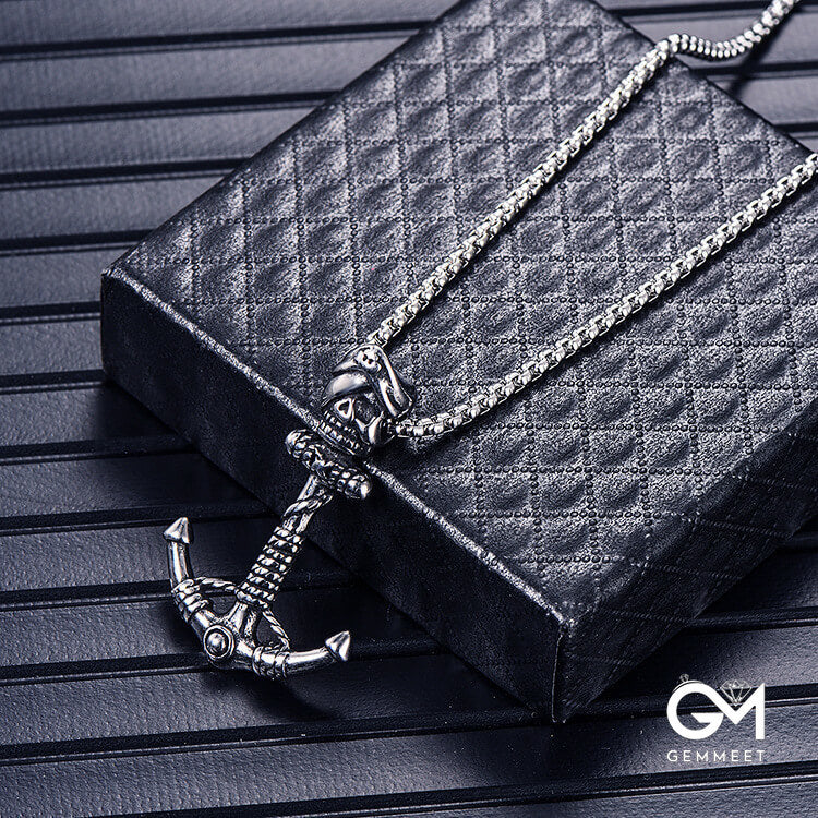 Titanium Steel Men's Skull Boat Anchor Necklace