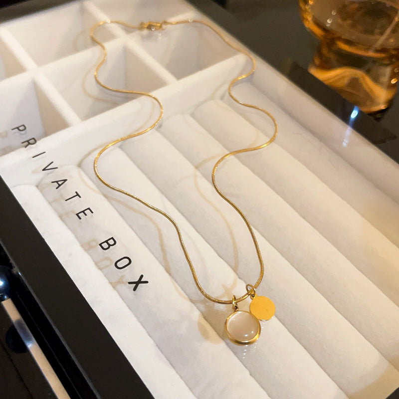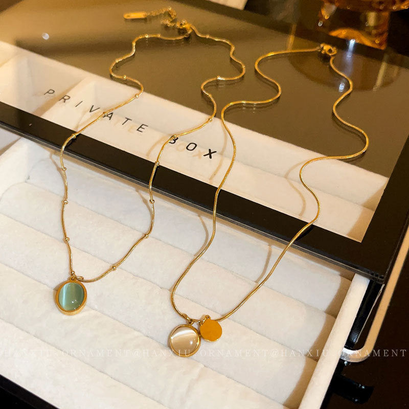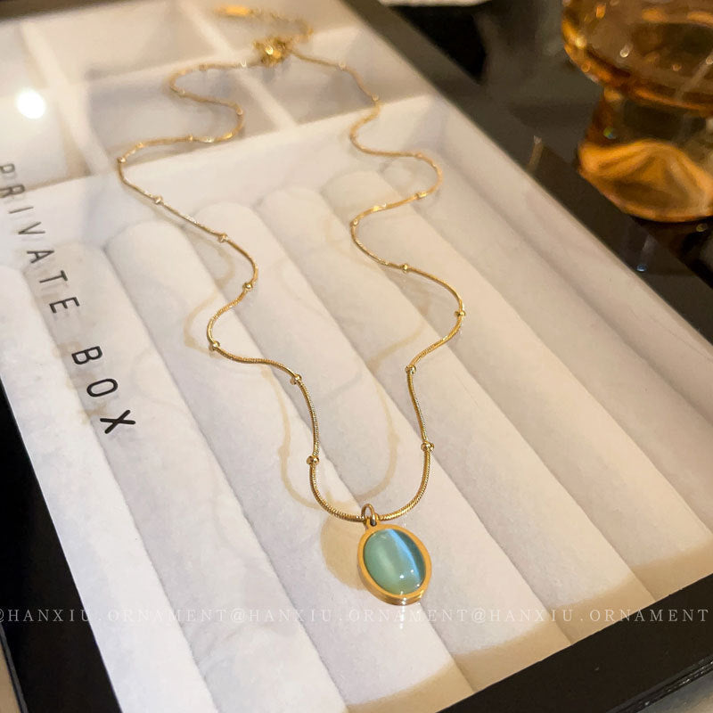 Titanium Steel Small Round Bead Cat's Eye Necklace