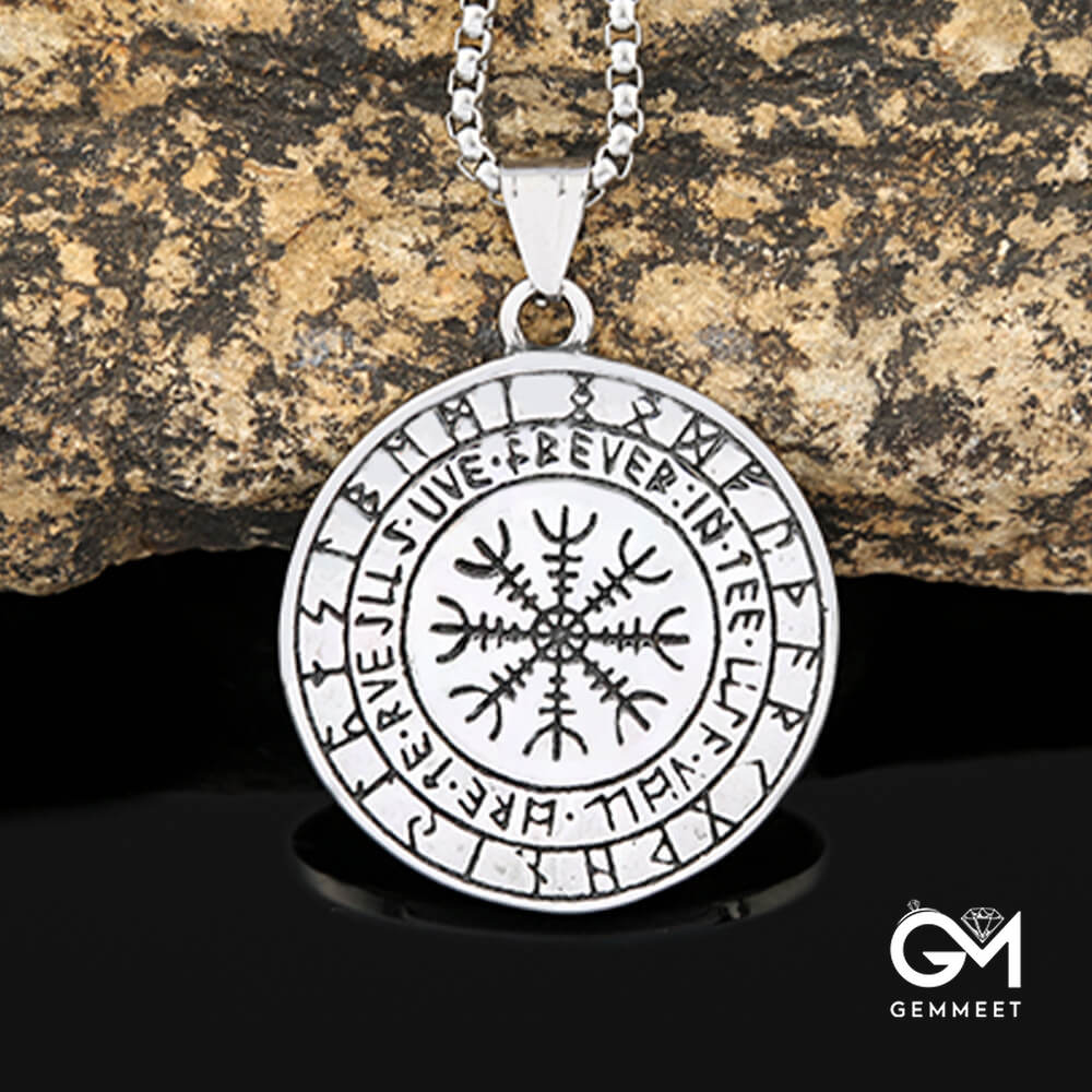 Titanium Steel Vitkin Wolf Head Totem Rune Necklace