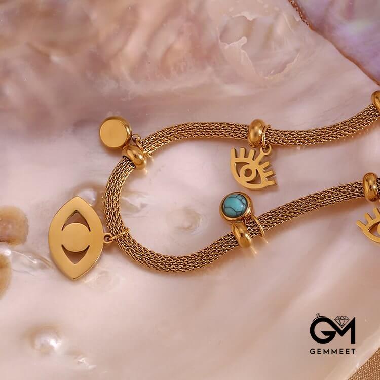 Turquoise White Zircon Evil Eye Thick Chain Necklace