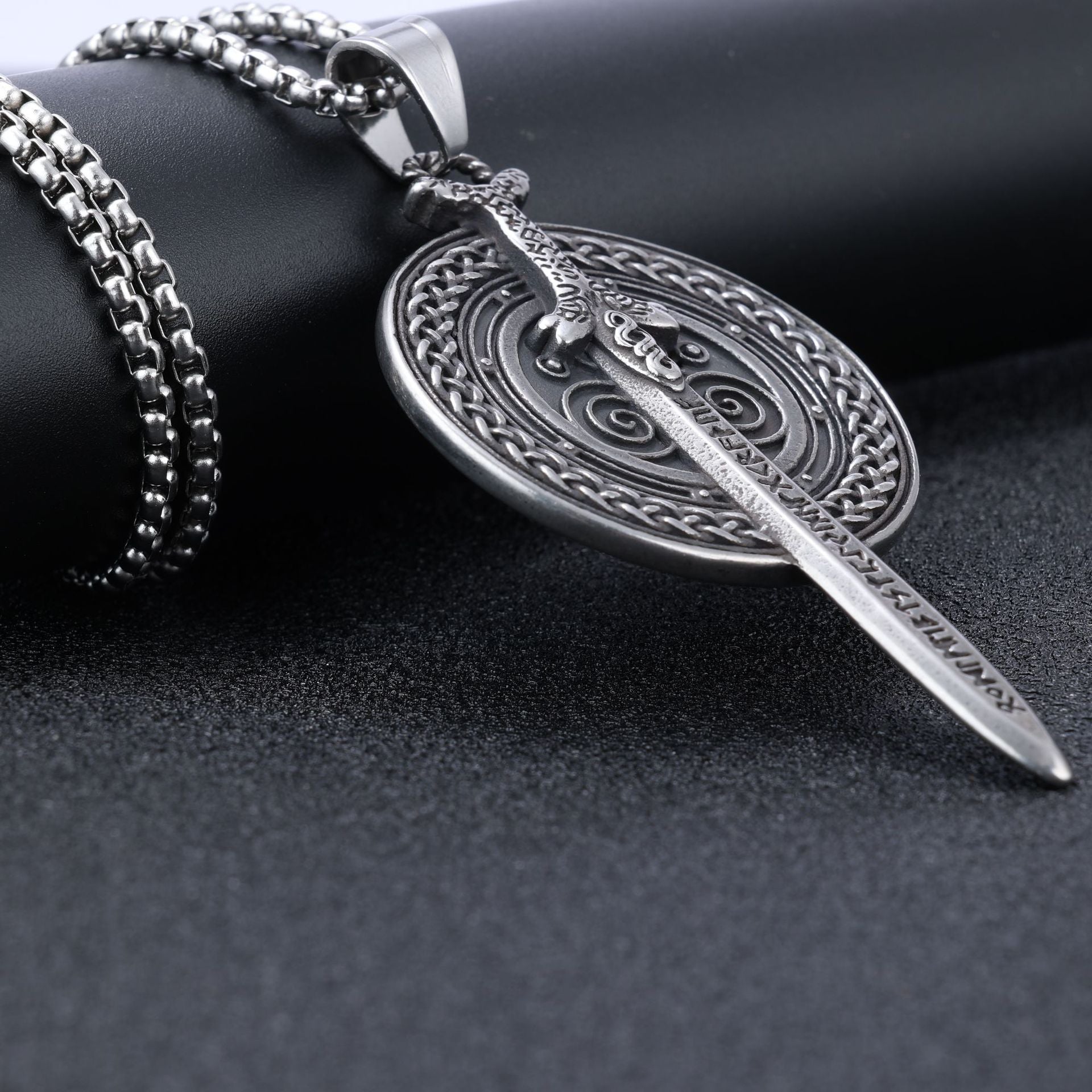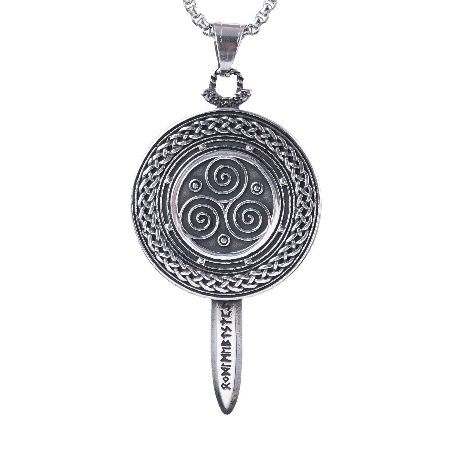 Viking Mythology Titanium Steel Shield Sword Pendant Necklace