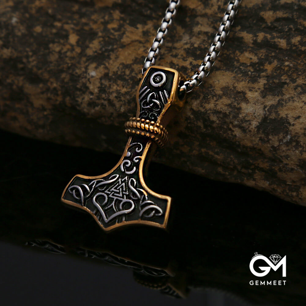 Viking Thor Hammer Triangle Rune Titanium Steel Necklace