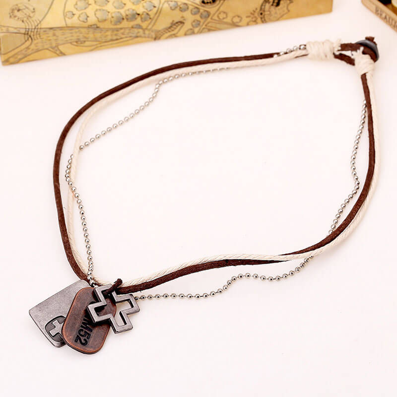 Vintage Cross Leather Necklace Simple Multilayer Necklace