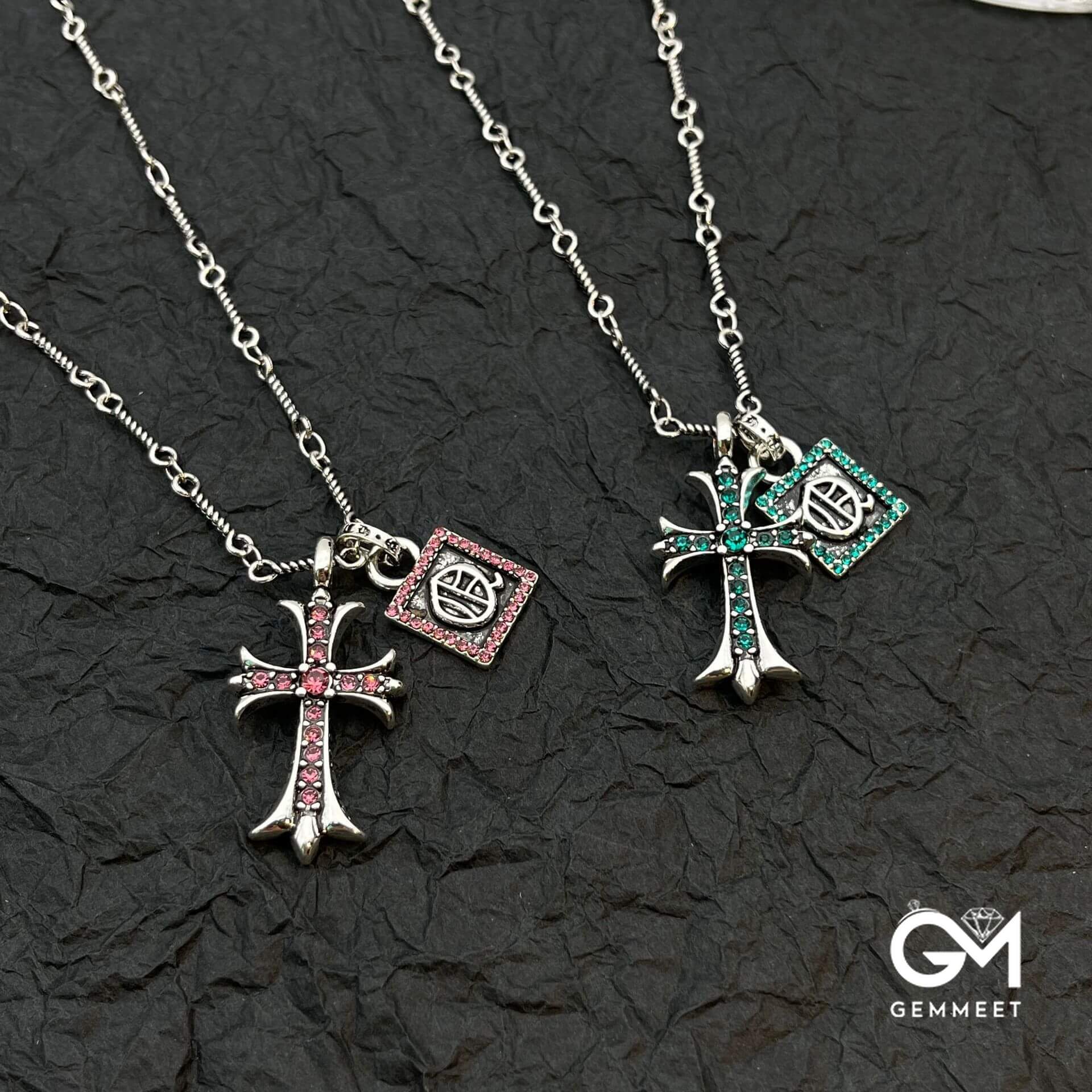 Vintage Cross Square Zircon Pendant Necklace