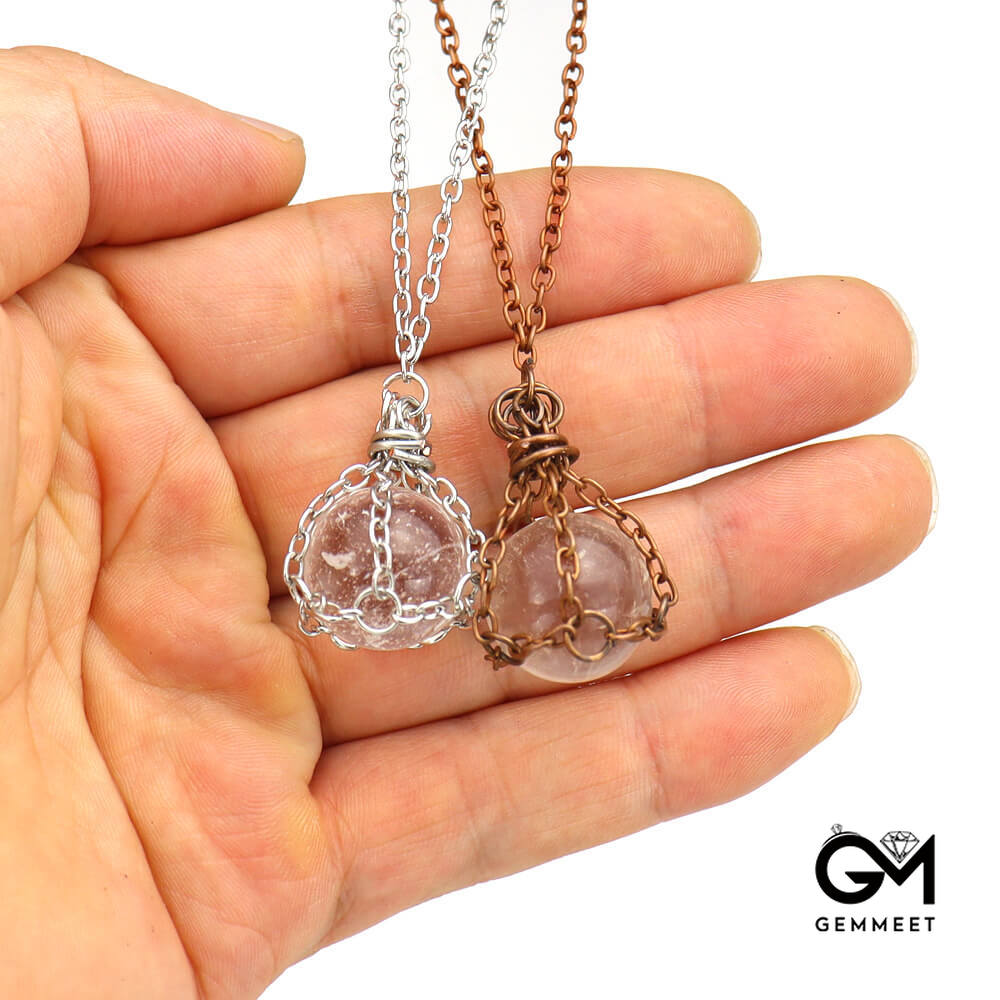 Vintage Crystal Ball Net Pendant Necklace