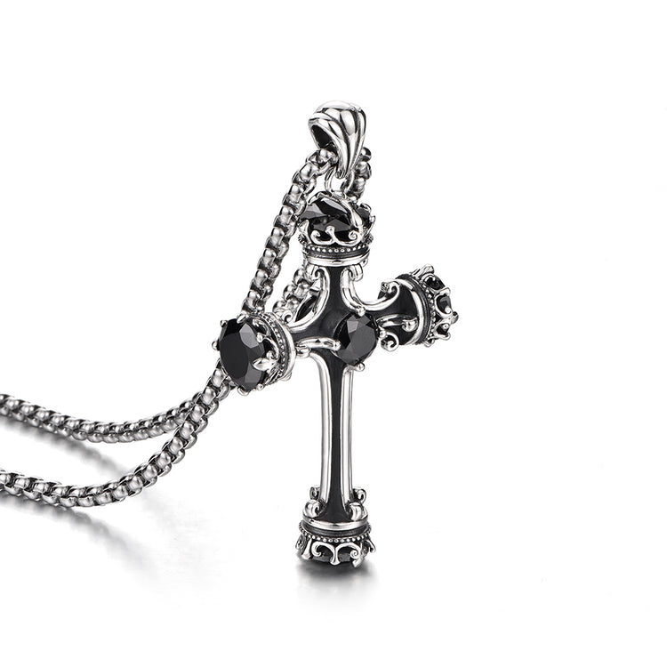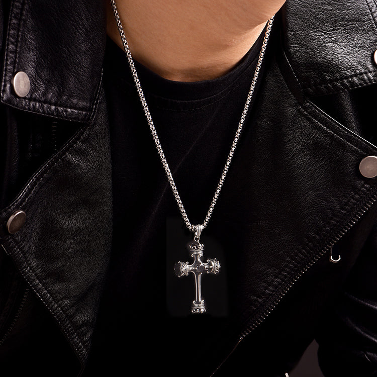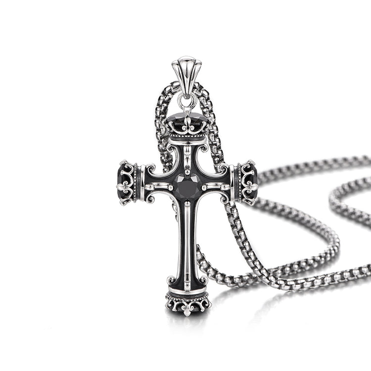 Vintage Design Sterling Silver Roman Column Zircon Cross Pendants Necklace