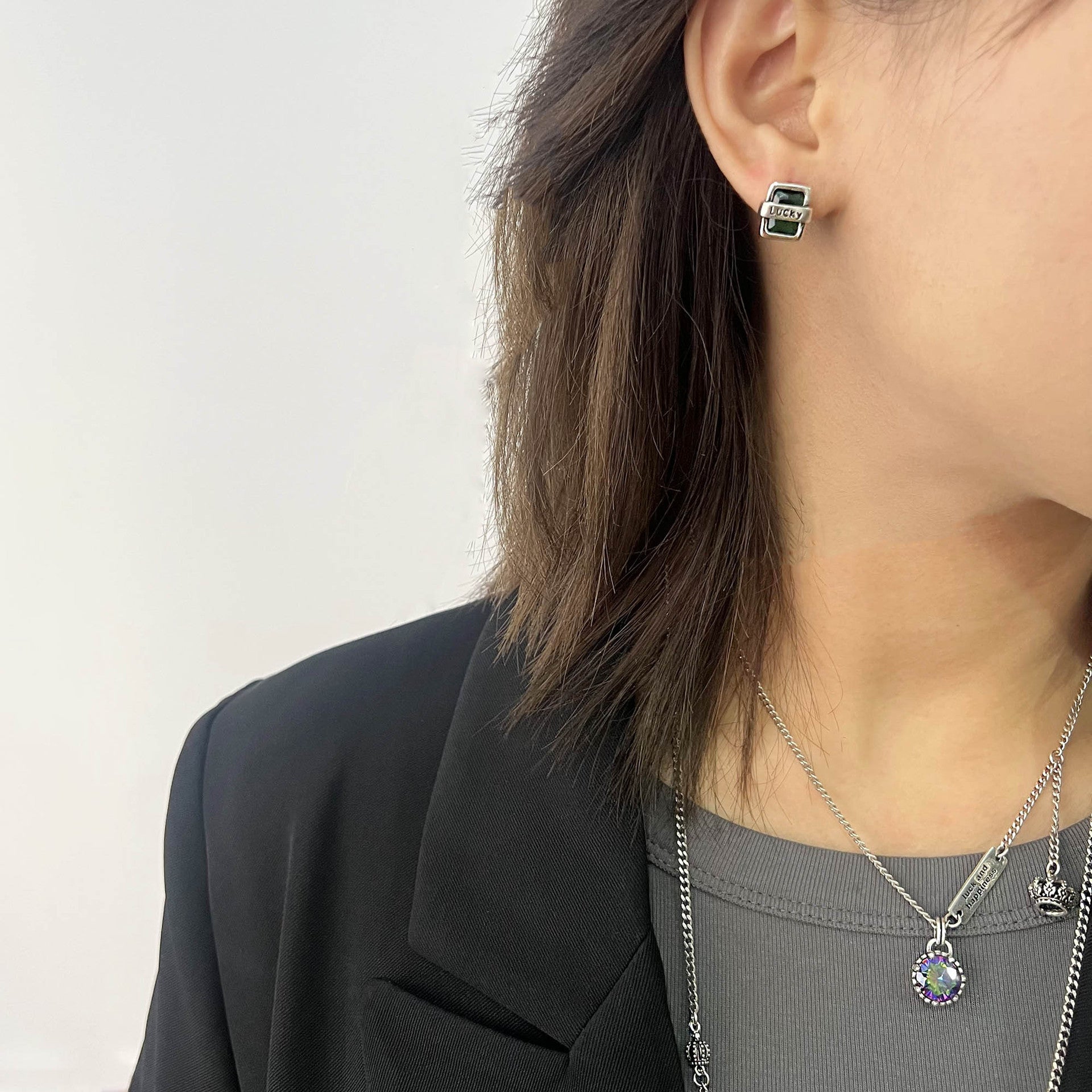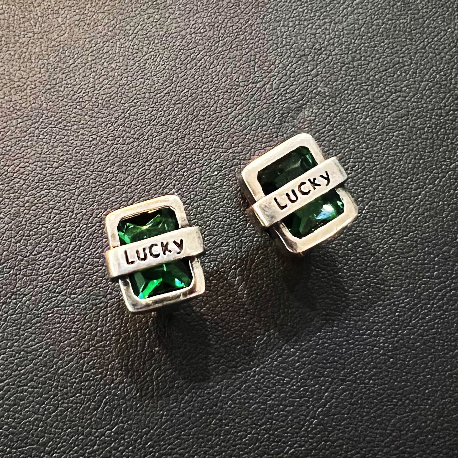 Vintage French Green Zircon Lucky Earrings