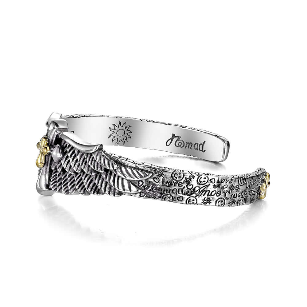 Vintage Men's Angel Feathered wings Cross Bracelet