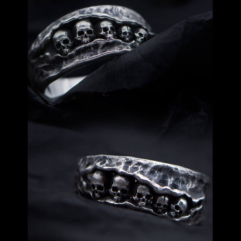 Vintage Men's Five Skull Ring