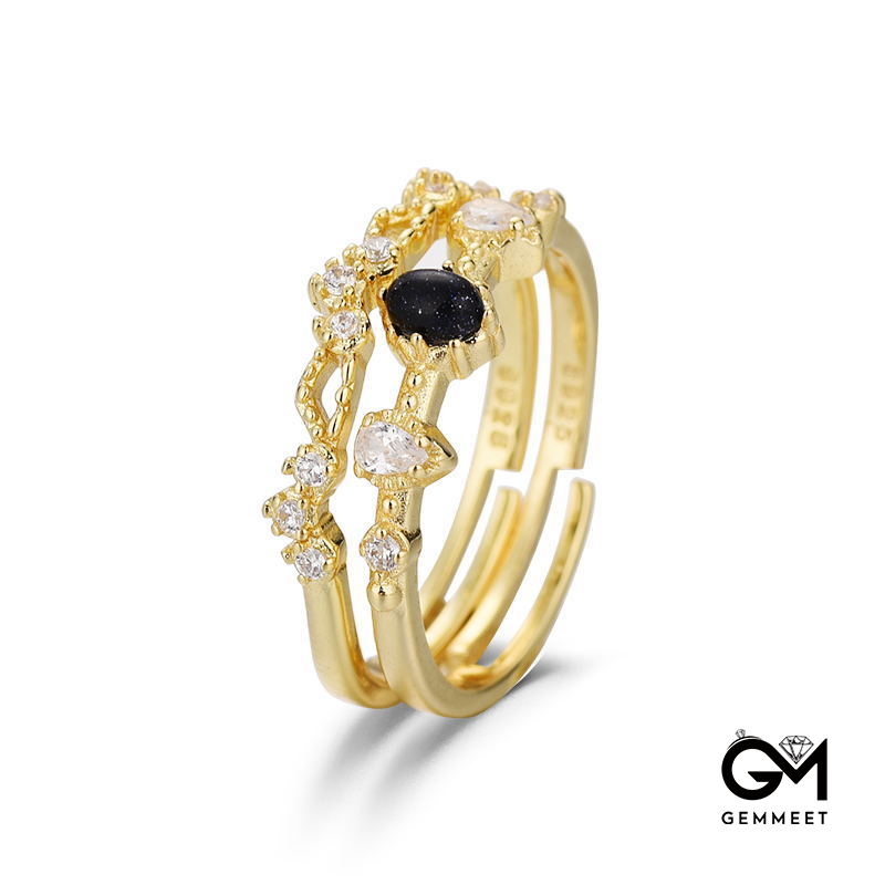 Vintage Night Sky Stars Blue Sand Stone Two-piece Ring Set