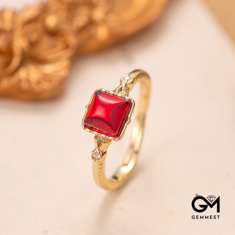Vintage Oil Painting Amber Opal Gold Plated Ring