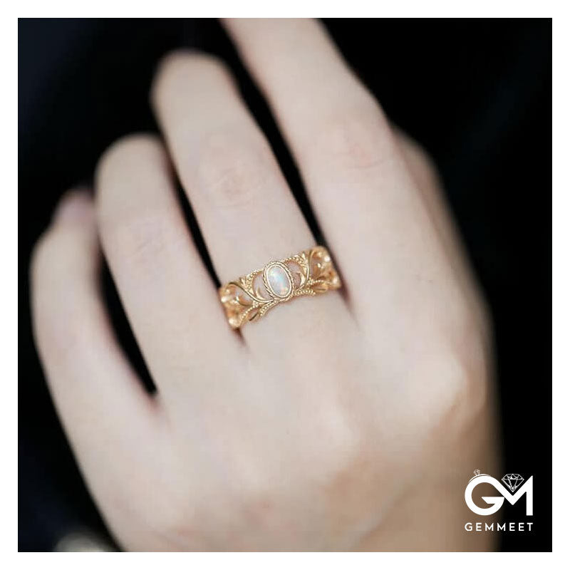 Vintage Open Adjustable Opal Gold Ring
