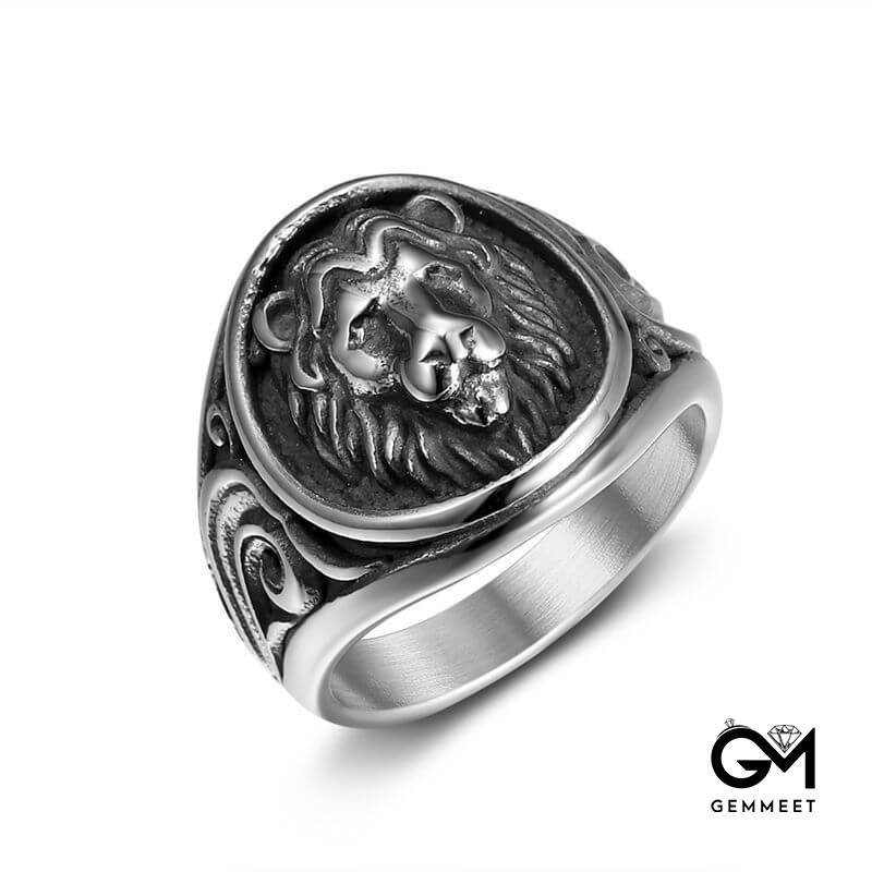 Vintage Punk Animal Lion Head Grass Pattern Men's Ring