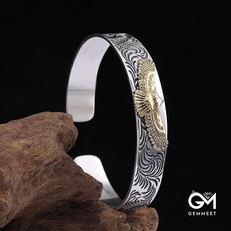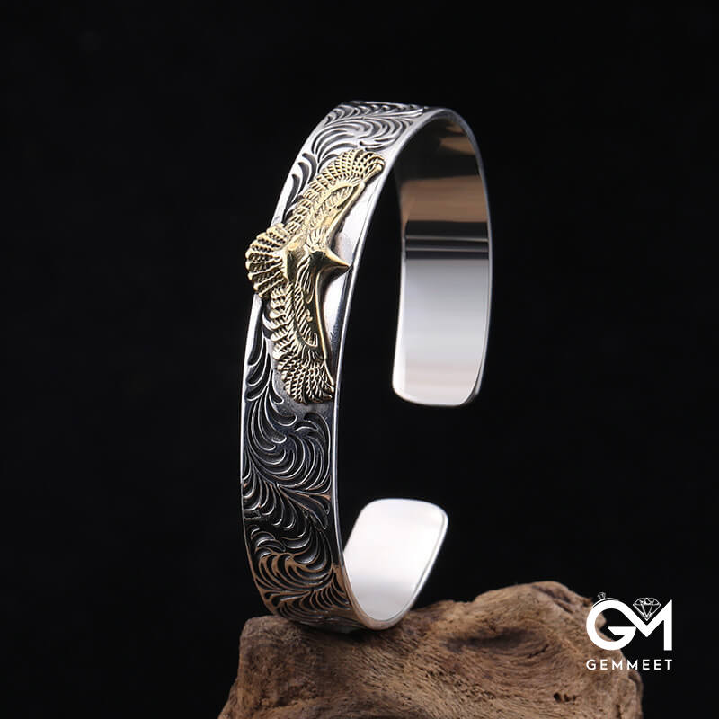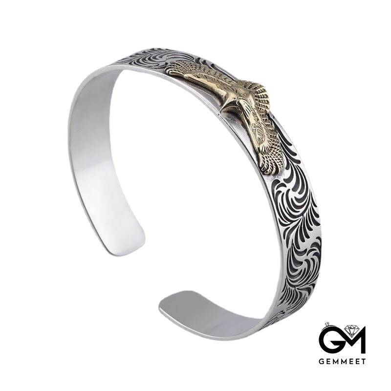 Vintage Rose Flower Tang Grass Eagle Bracelet