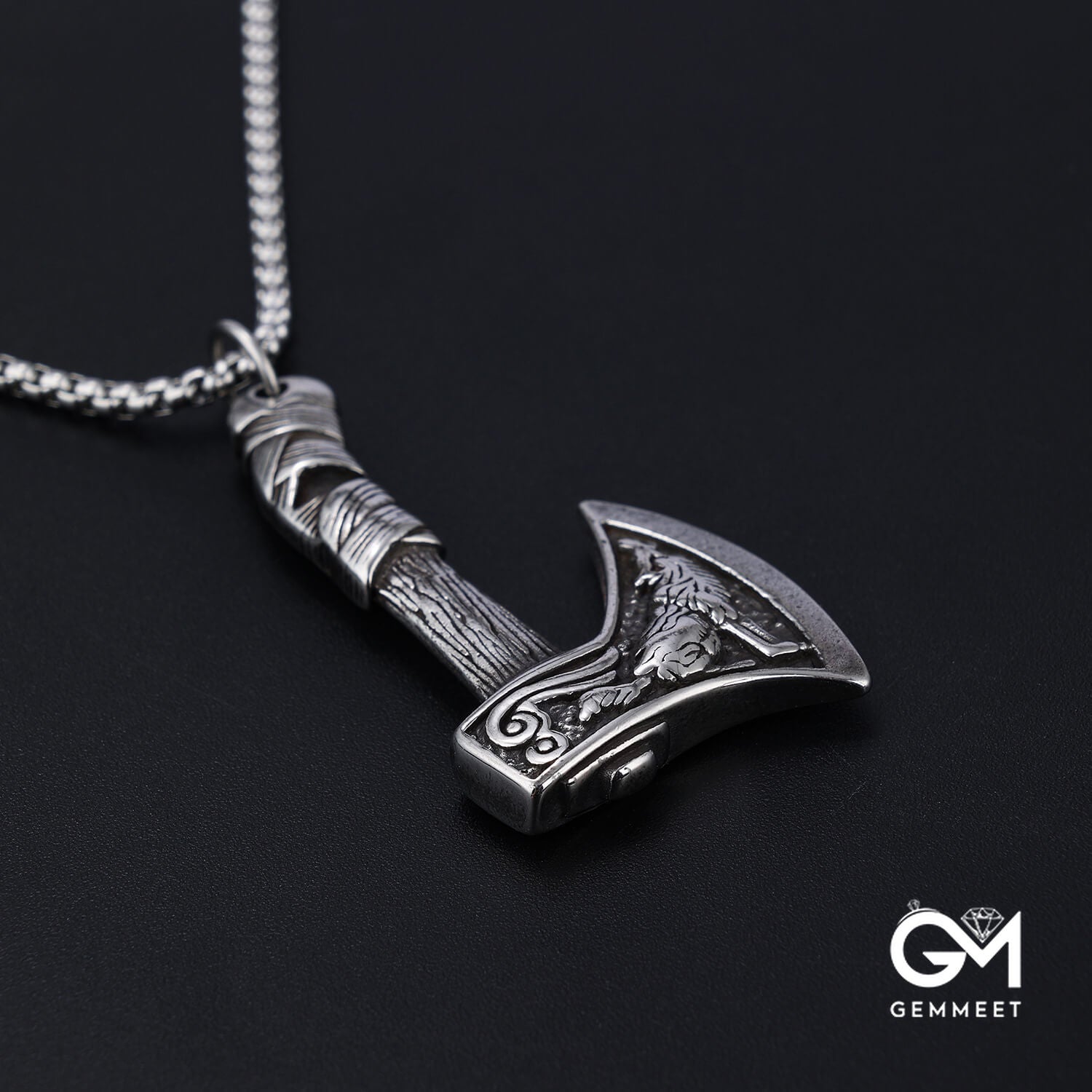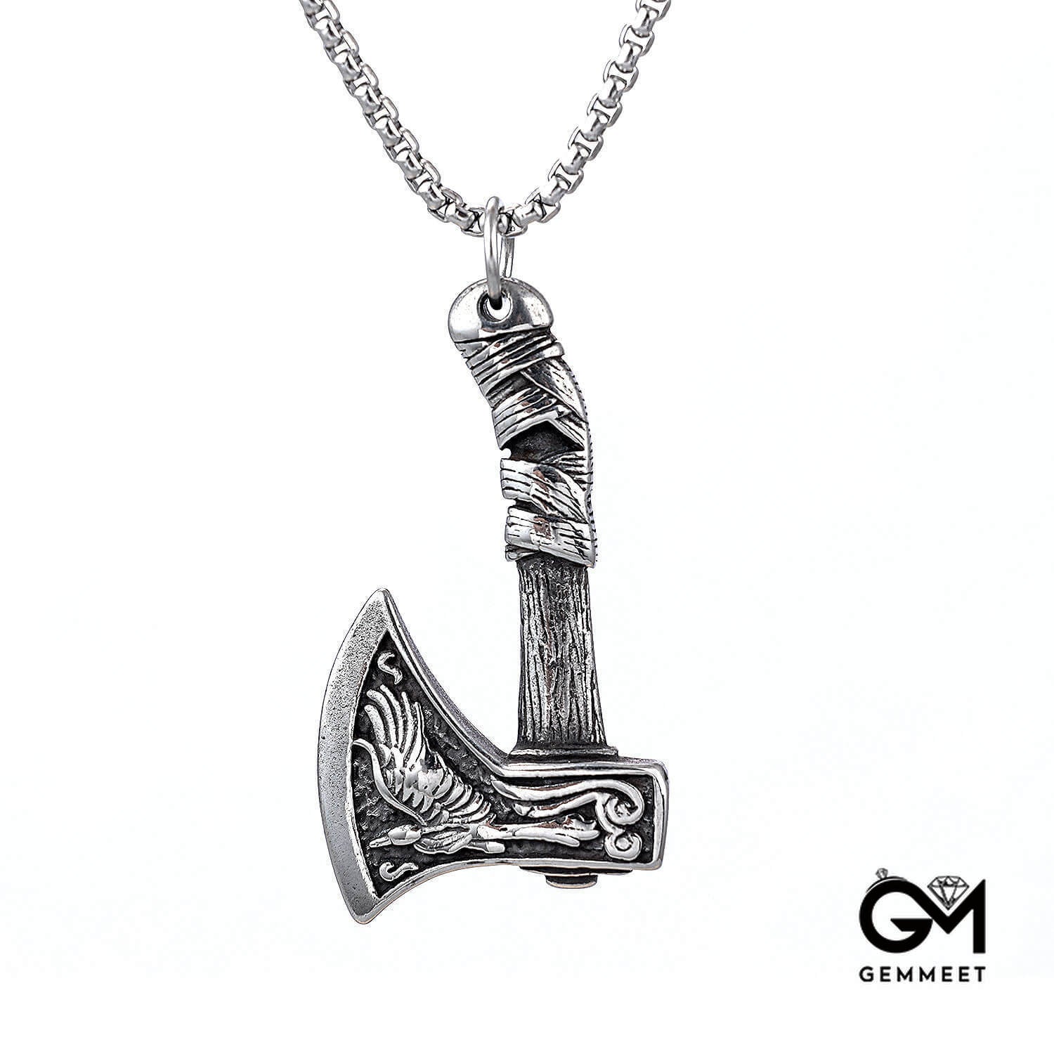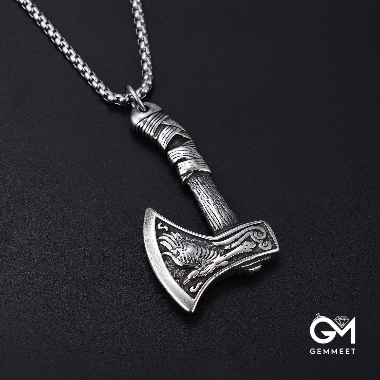 Vintage Stainless Steel Axe Skull Pendant Necklace