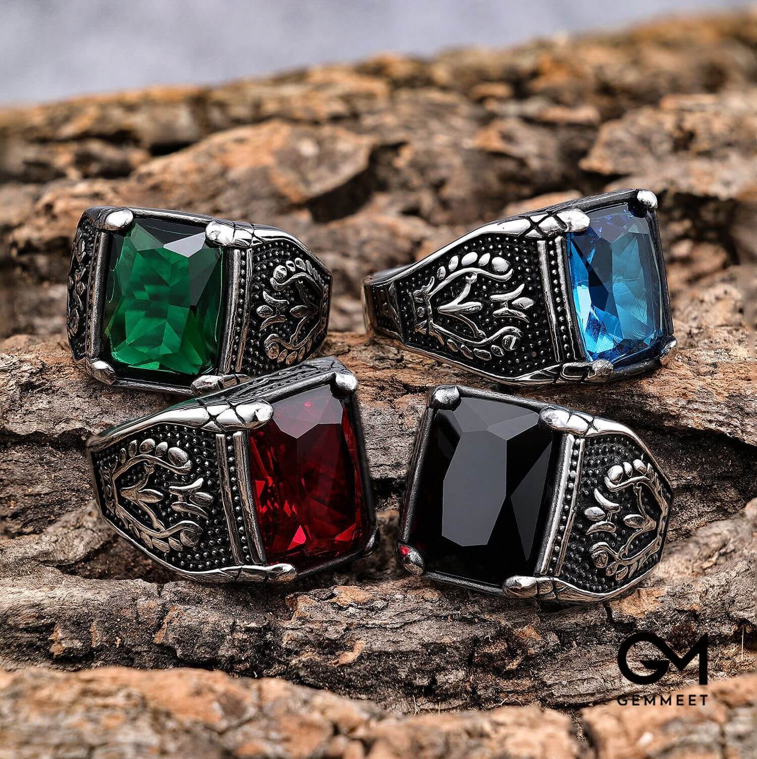 Vintage Stainless Steel Tulip Zircon Nested Ring