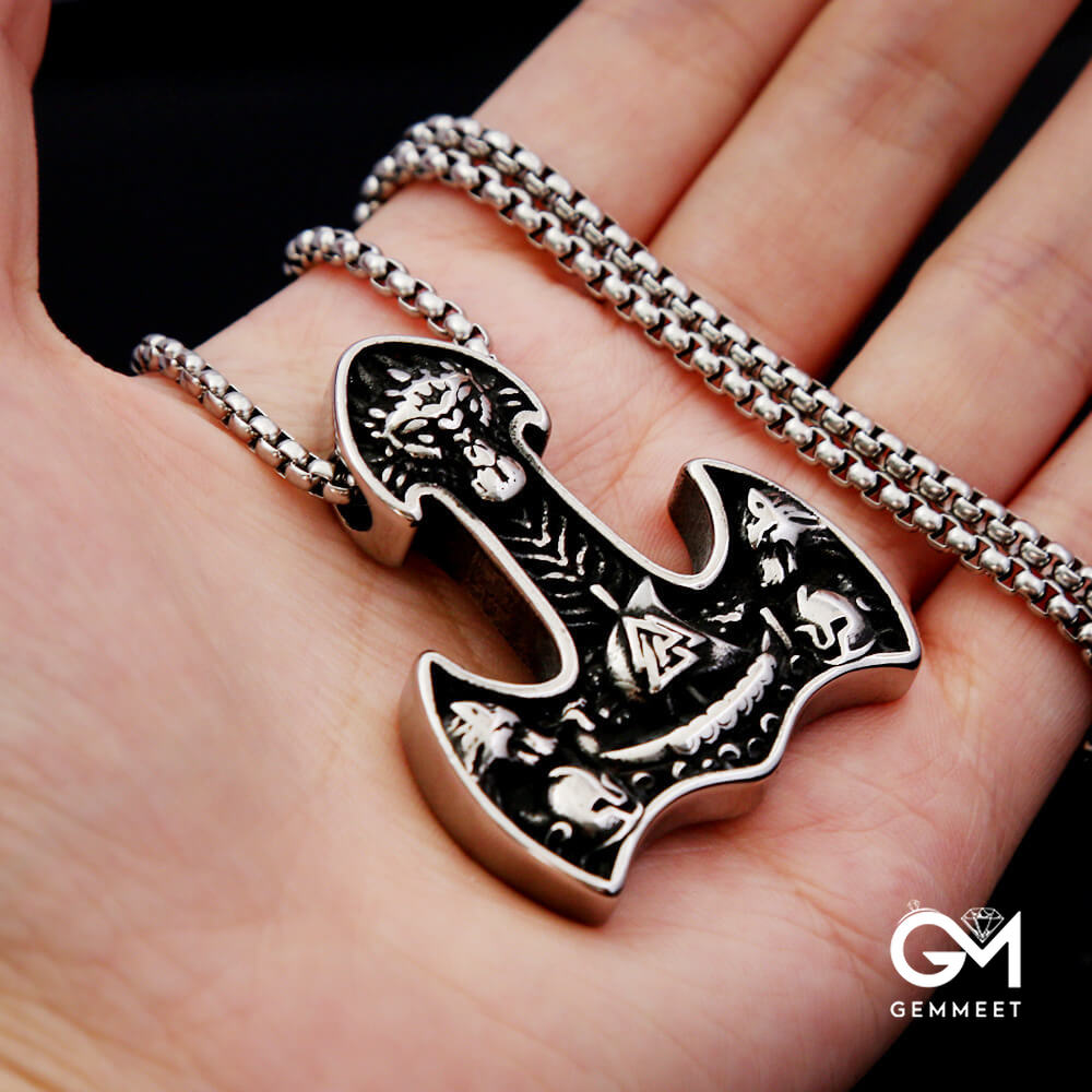 Vintage Stainless Steel Viking Ship Triangle Rune Necklace