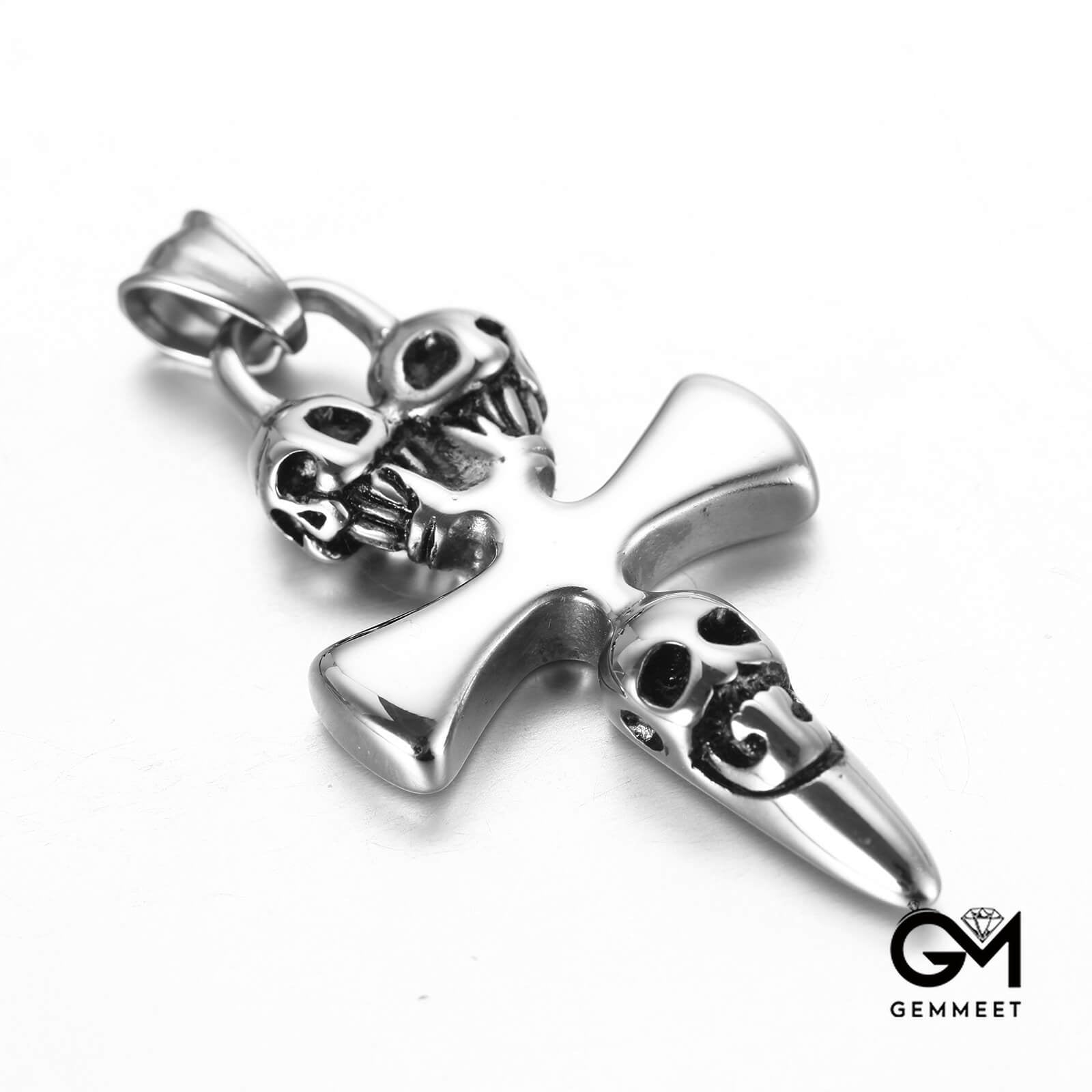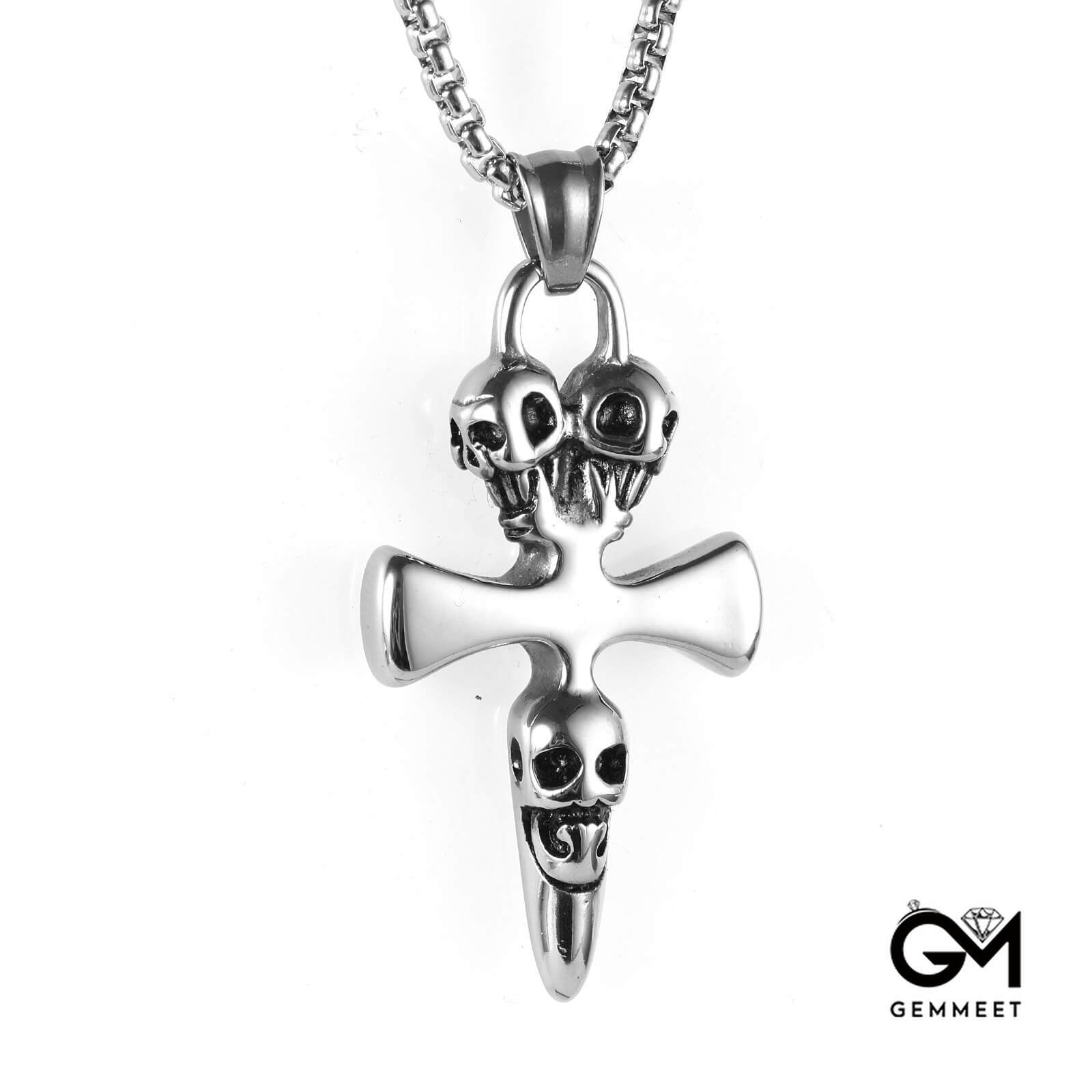 Vintage Three Skull Cross Alloy Pendant Necklace