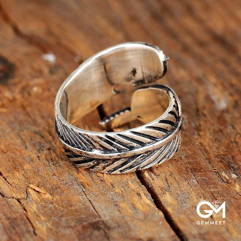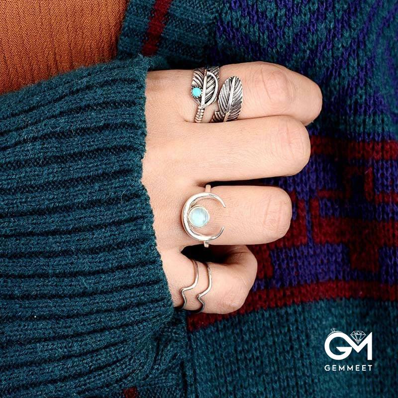 Vintage Turquoise Feather Jewelry Adjustable Ring