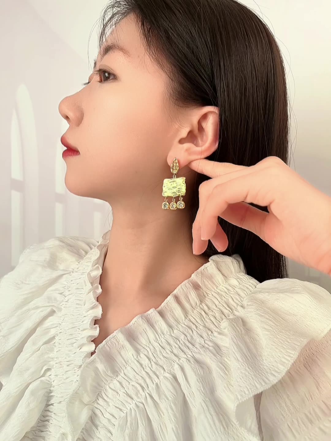 Vintage Zircon Flash Diamond Fringe 925 Silver Needle Earrings