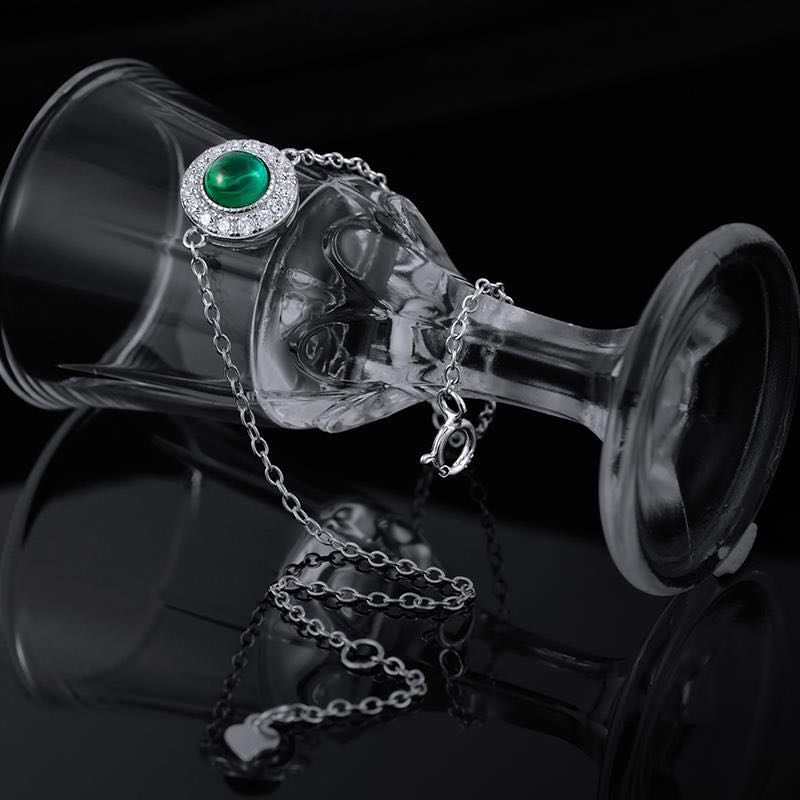 White Gold Full Stones Round Cut Emerald Gem Adjustable Bracelet