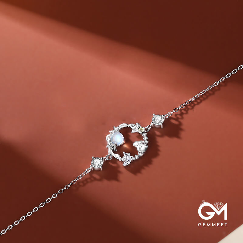 White Gold S925 Vintage Rabbit Moonstone Earrings