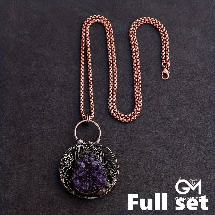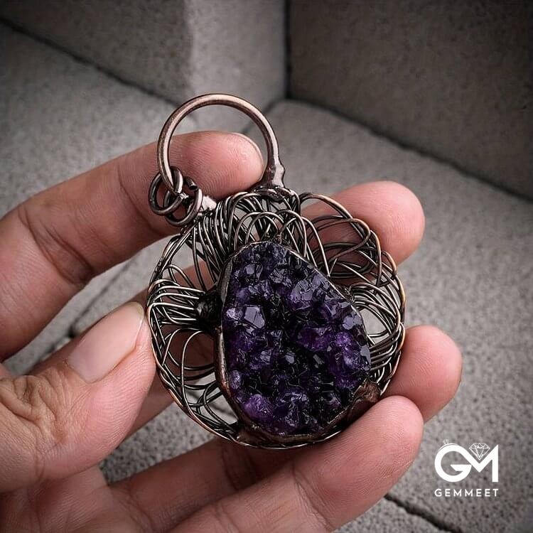 Wire Wound Inlaid Irregular Amethyst Gemstone Necklace
