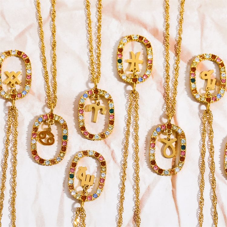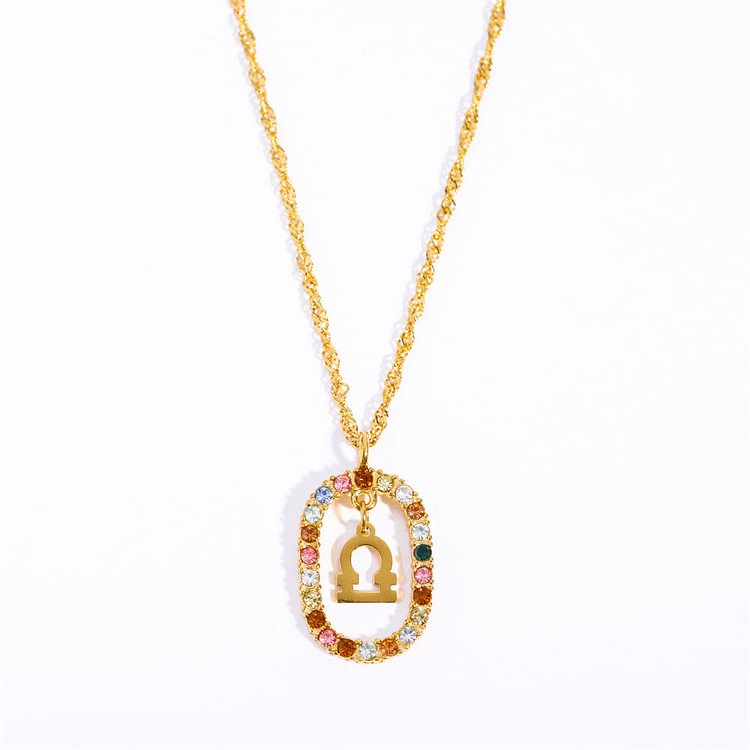 Zircon Openwork Oval Constellation Zodiac Necklace